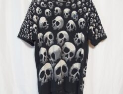 CHRIS PINKERTON◆クリス・ピンカートン SKULL スカル オールオーバー Tシャツ 1992 LIQUID BLUE製(黒)サイズL・難有り◆現状渡し品